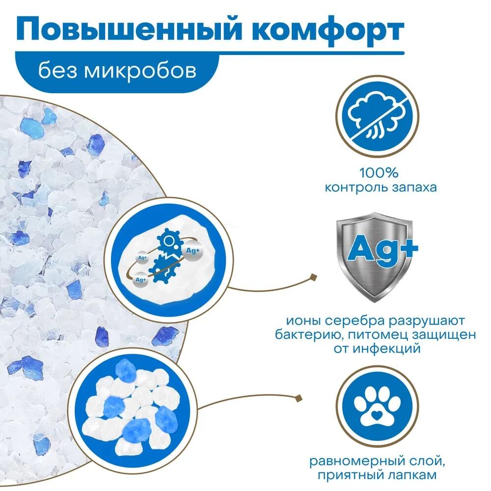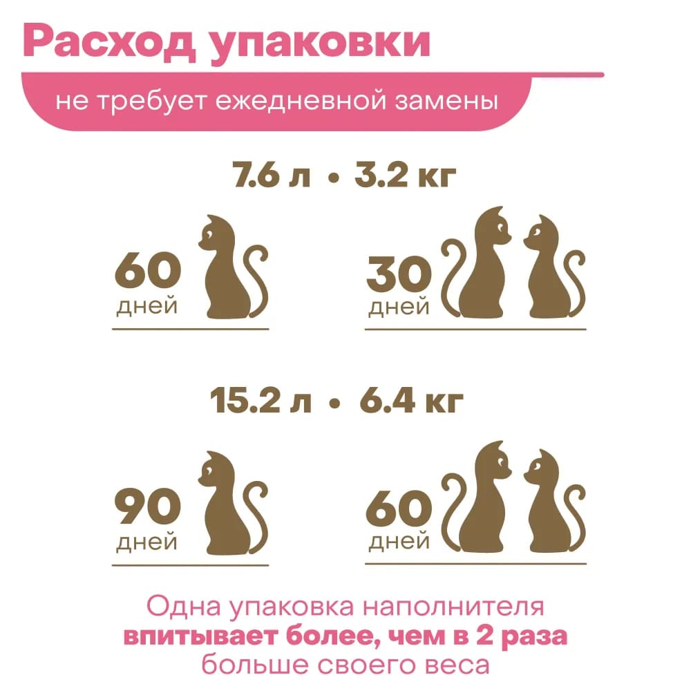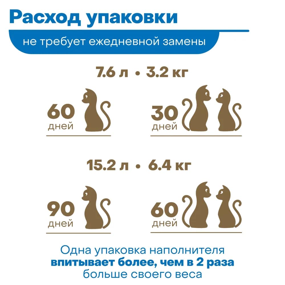 Силикагелевая форма обеспечивает моментальную впитывающую способность, контролирует запах в квартире и защищает от бактерий. Гипоаллергенные свойства нашего наполнителя гарантируют, что ваш котик не будет страдать от аллергических реакций. Пушистые лапки вашего кота или котенка останутся чистыми, а дом - свежим без неприятного запаха. Каждый день ваш любимый питомец будет наслаждаться комфортом благодаря удобной гигиенической форме наполнителя в виде кристаллов. Большой 15,2 - литровой упаковки хватит на длительное время, и вам не придется часто менять лоток.